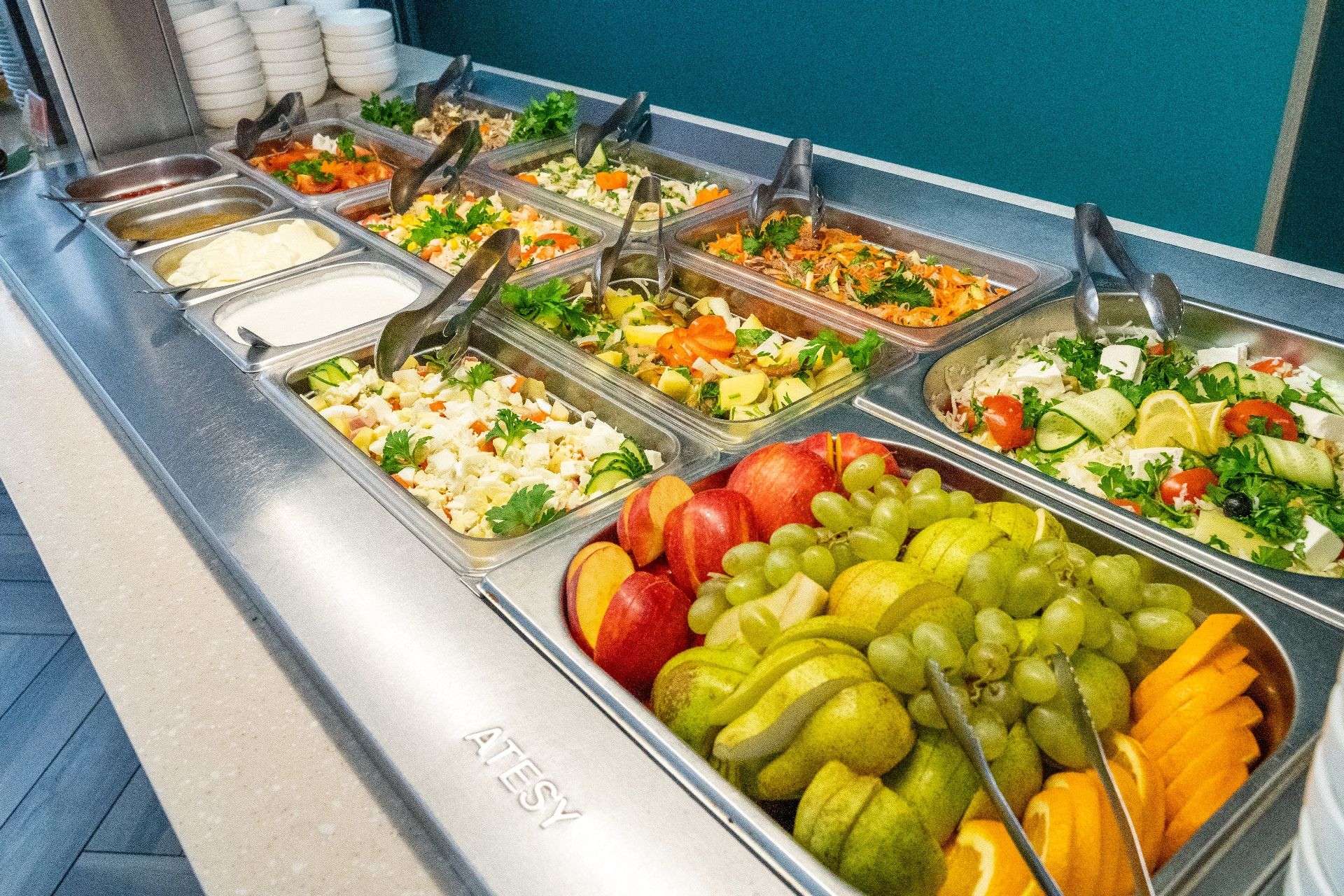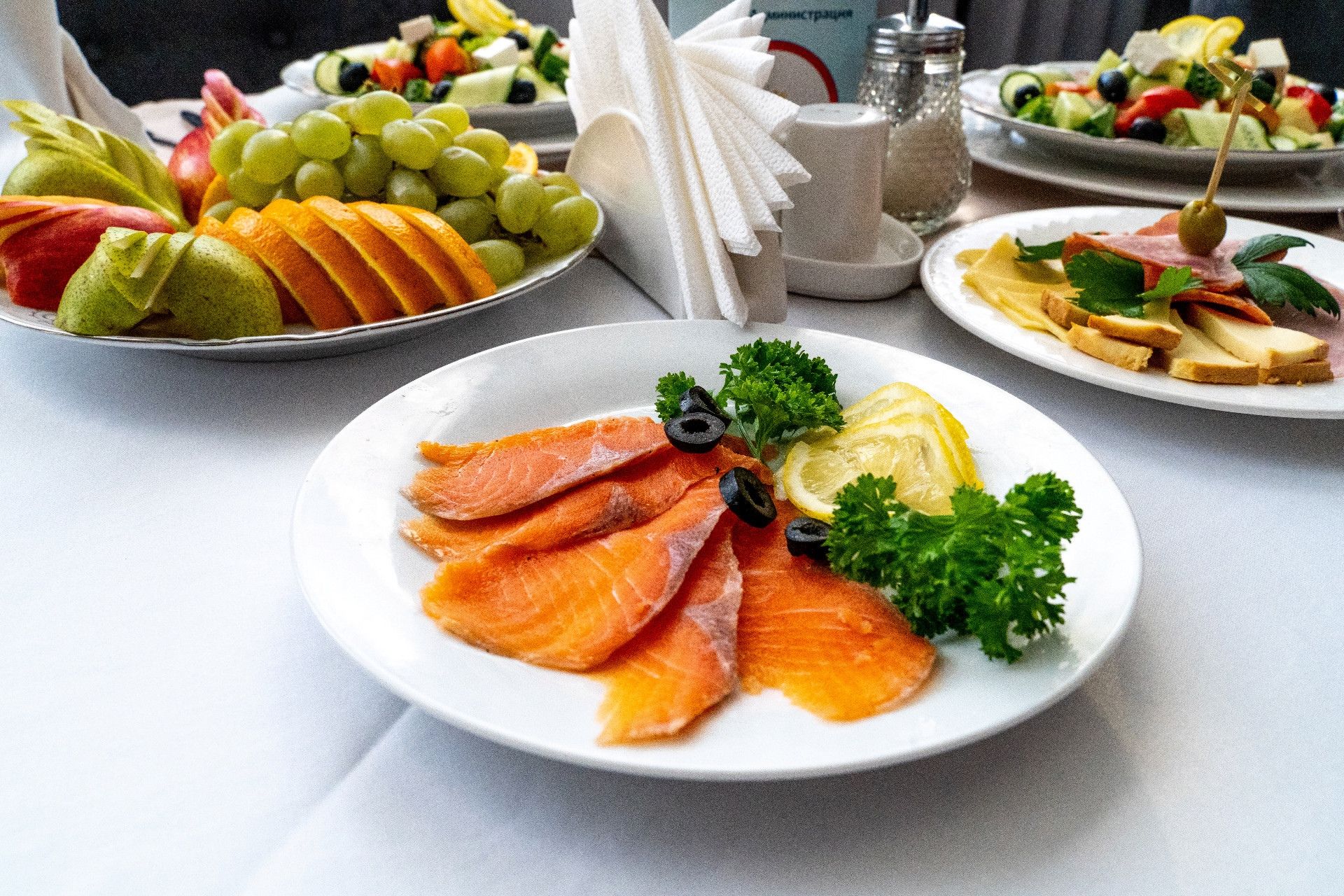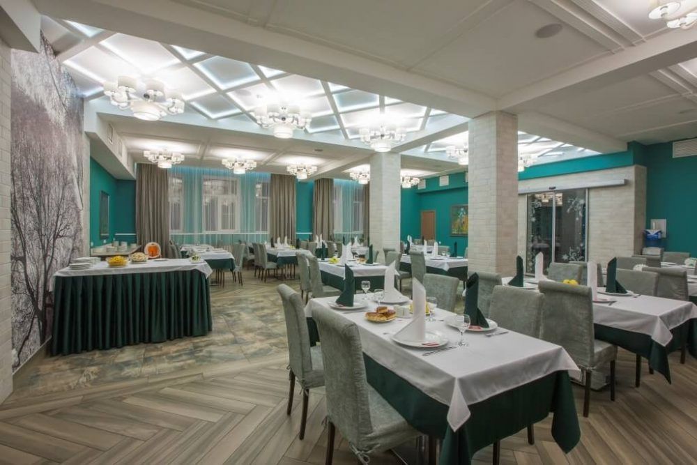 Гостям предоставляется 3-разовое питание по системе «шведский стол». Также предусмотрены другие виды питания: санаторно-курортное, диетическое, VIP питание, детское. Для детей в санатории предоставляется дополнительный полдник. В зале теплая, домашняя обстановка. Гостей ждет отличное обслуживание, приготовление вкусных блюд, хорошее настроение, внимание и гостеприимство. Для проживающих в люксе питание организовано VIP-зале. Летом открывается кафе рядом с корпусом, На первом этаже работает бар. В уютном лобби-баре можно выпить чашечку ароматного кофе, оздоровиться травяным чаем, отведать выпечку собственного производства.
