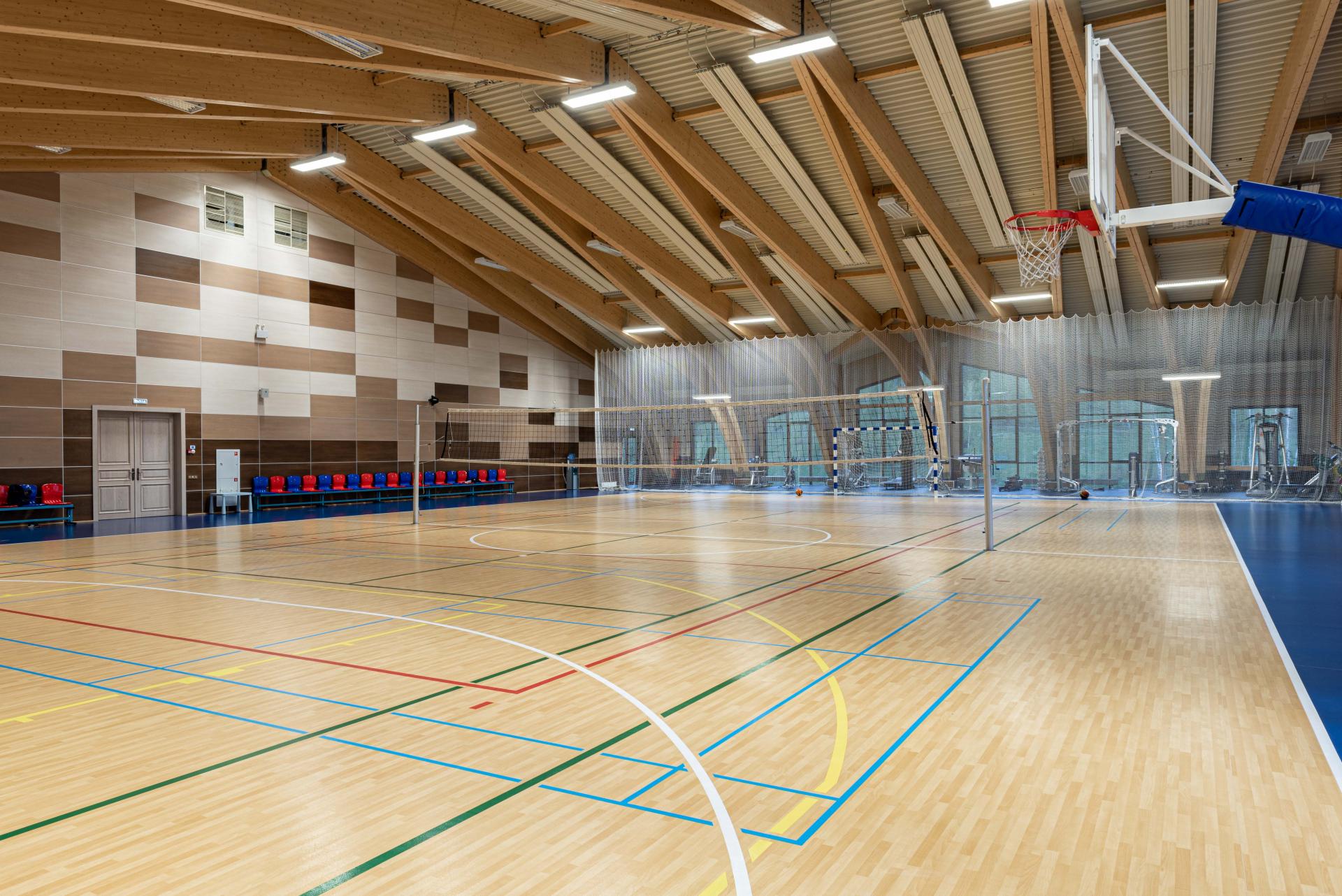 Универсальный корт станет основой для занятий баскетболом, волейболом, мини-футболом, теннисом и бадминтоном. Это многофункциональное пространство создано для разнообразных видов активности, чтобы удовлетворить потребности каждого гостя.