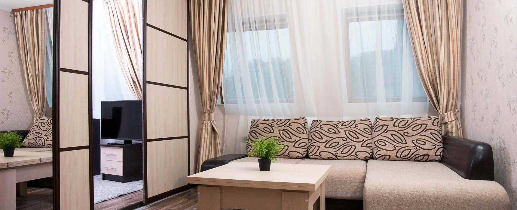 В номере: вешалка, зеркало, кровати односпальные /одна двуспальная кровать, прикроватные тумбочки, стол, стулья, шкаф, индивидуальная система обогрева, кондиционер, микроволновая печь, мини-холодильник, сейф, телевизор, телефон, чайная станция, электрочайник