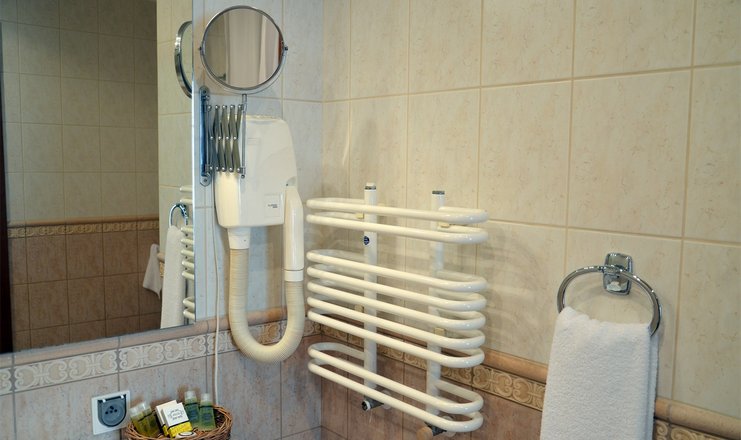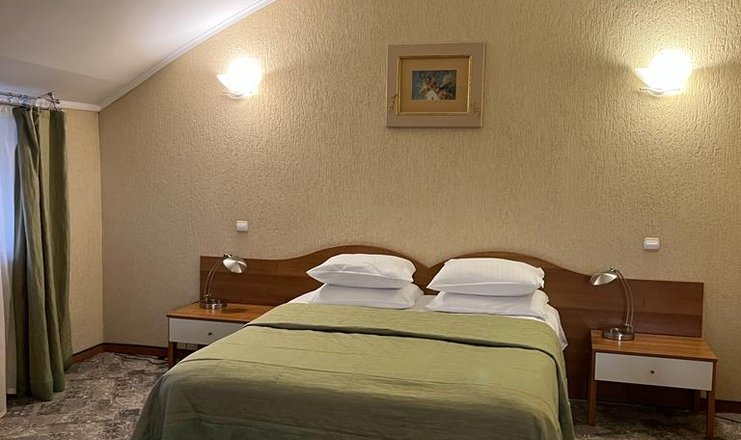 В номере:вешалка, зеркало, кровати односпальные /одна двуспальная кровать, прикроватные тумбочки, стол, стулья, тумба багажная, шкаф-купе, кондиционер, мини-холодильник, телевизор, телефон