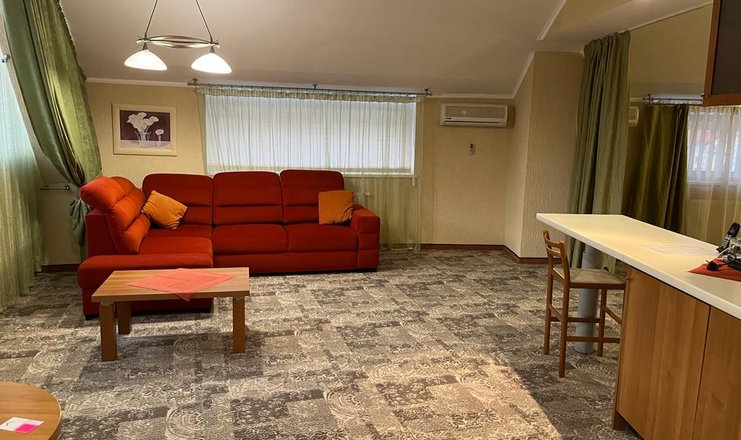 В номере: Кухня, вешалка, диван раскладной, зеркало, комод, кровать двуспальная, прикроватные тумбочки, столик журнальный, стулья, шкаф-купе, гладильная доска, кондиционер, музыкальный центр, набор посуды, электроплита, посудомоечная машина, сейф, TV, телефон, теплый пол, утюг, холодильник, чайный набор посуды, электрочайник