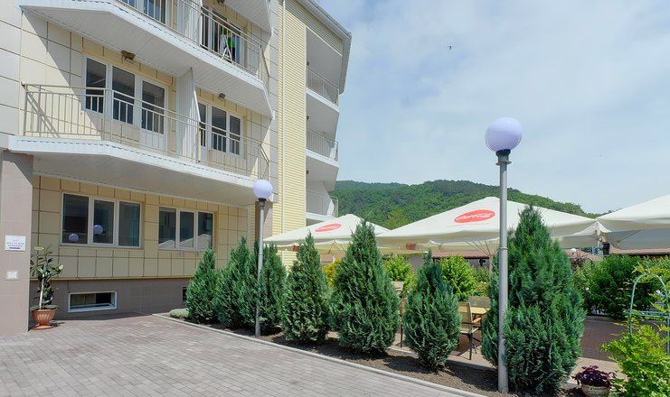 Комплекс предлагает номера уровня стандарт и комфорт. Кроме кроватей, в номерах есть прикроватные тумбочки, кондиционеры, холодильники, телевизоры. В стандартных номерах есть раскладная односпальная кровать, а в номерах «Комфорт» — двуспальный диван-кровать для дополнительного спального места. Во всех номерах есть собственная ванная комната с душем. В стоимость пакета входит комплексный завтрак, который подается в кафе, расположенном на территории пансионата.