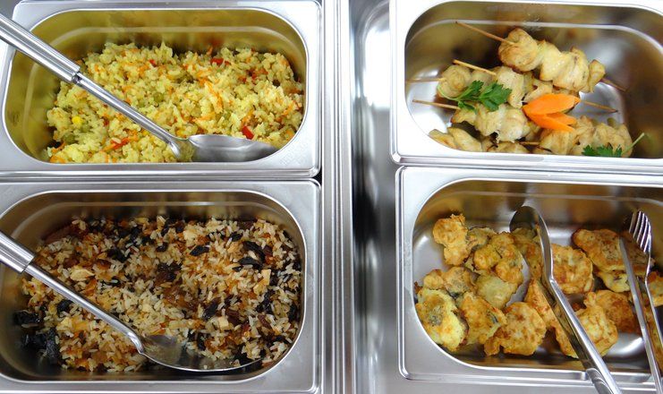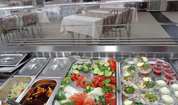 Элементы шведского стола: салат-бар, который представлен широким выбором овощей и зелени. Вегетарианское, детское, постное меню возможно по согласованию. В столовой имеется кондиционер, СВЧ-печь (2 штуки).