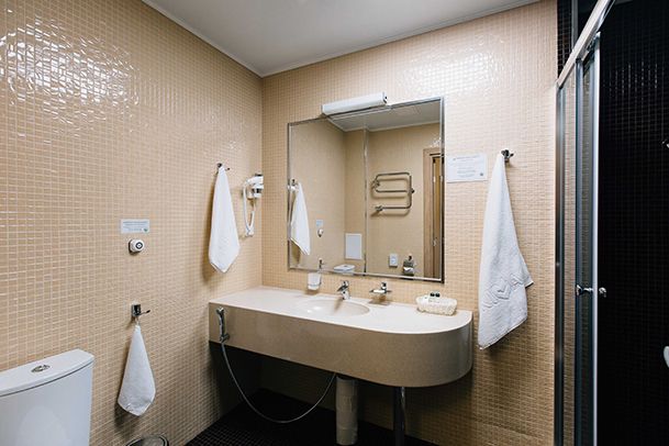 Санузел: душ, раковина, унитаз, биде, фен, гигиенические принадлежности