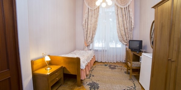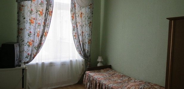 В номере: 1-односпальная, шкаф/гардероб, телевизор, холодильник, чайник, столовые приборы.