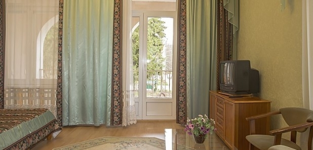 В номере: 1-двухспальная ковать, балкон, кондиционер, мягкая мебель, шкаф/гардероб, телевизор, холодильник, чайник, столовые приборы.