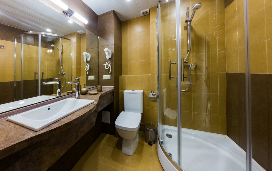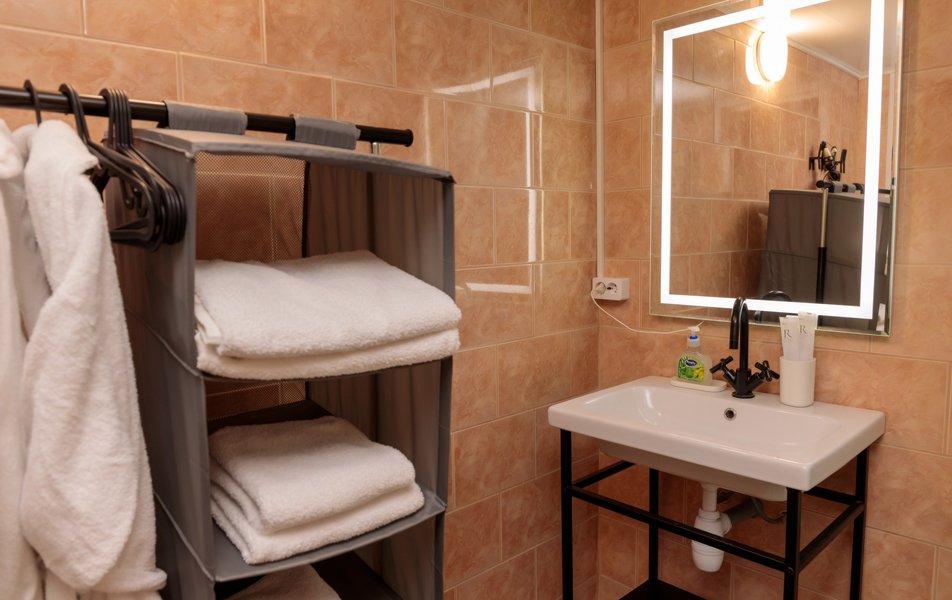 Санузел: с ванной, душевая кабина, фен, халаты и тапочки, гигиенический набор