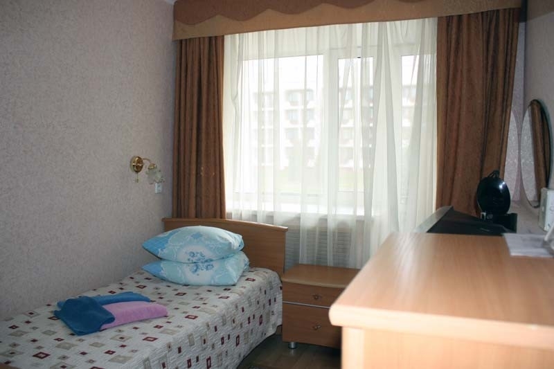 В номере: 1-спальная кровать, тумбочка, стул, столик, шкаф для одежды, телевизор, холодильник.