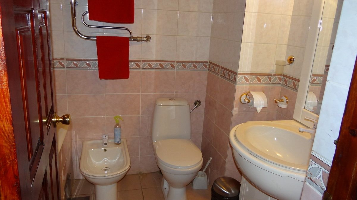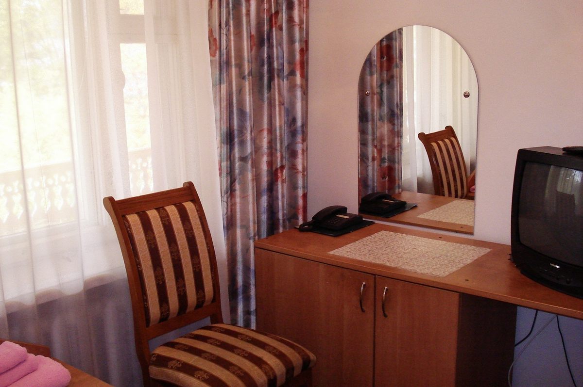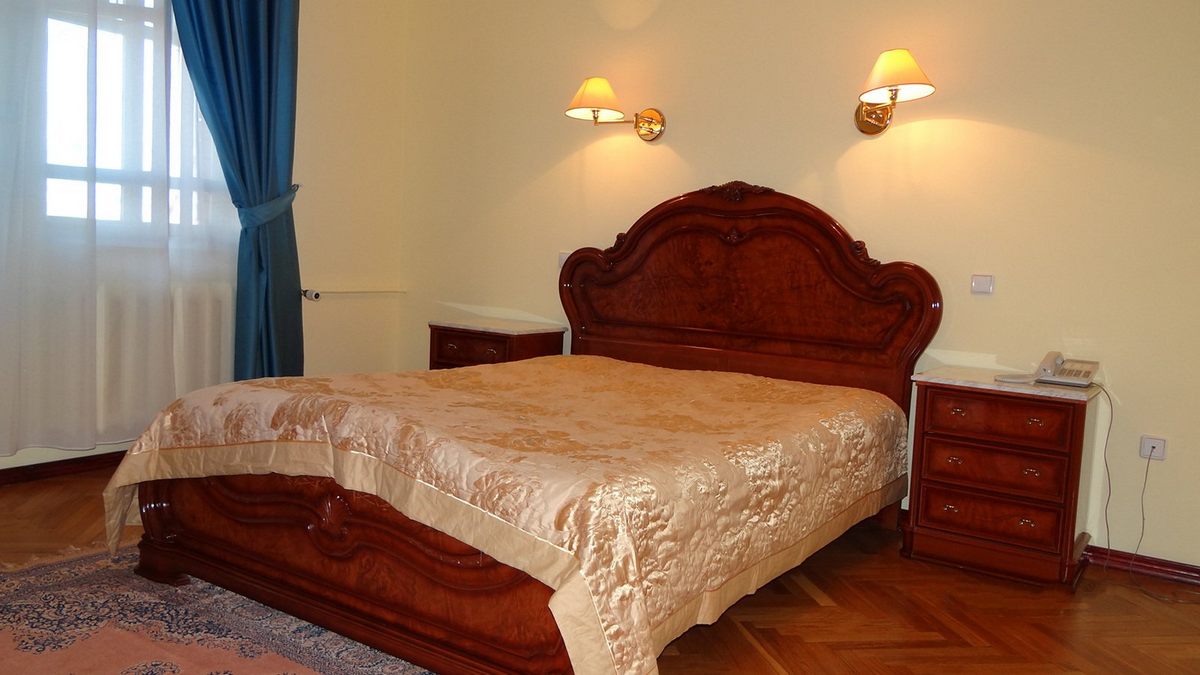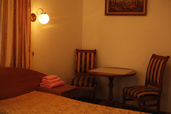 В номере: холодильник, телевизор, телефон, чайник, большая ванна с душем, биде, фен.