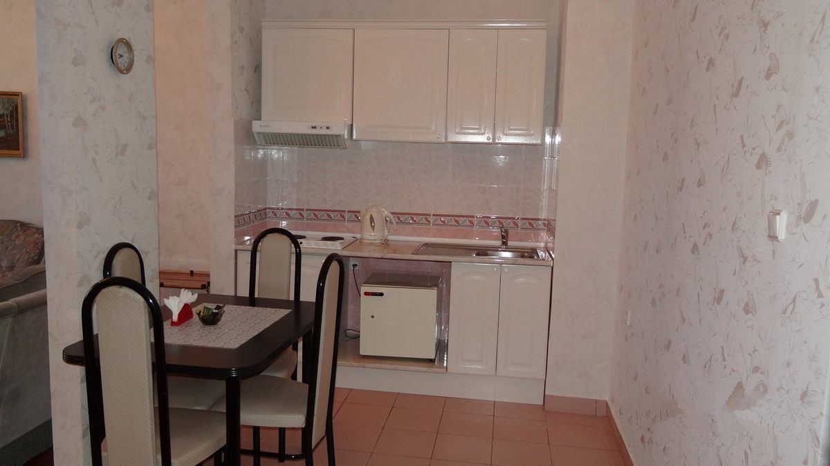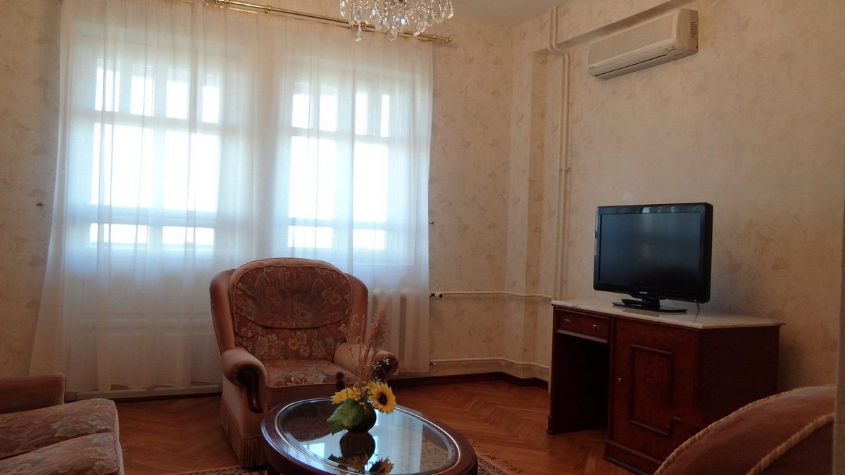 В номере: две комнаты (гостиная и спальня), мини-кухня с электроплитой, две лоджии, кондиционер, холодильник, телевизор, телефон, чайник, большая ванна с душем, биде, фен.