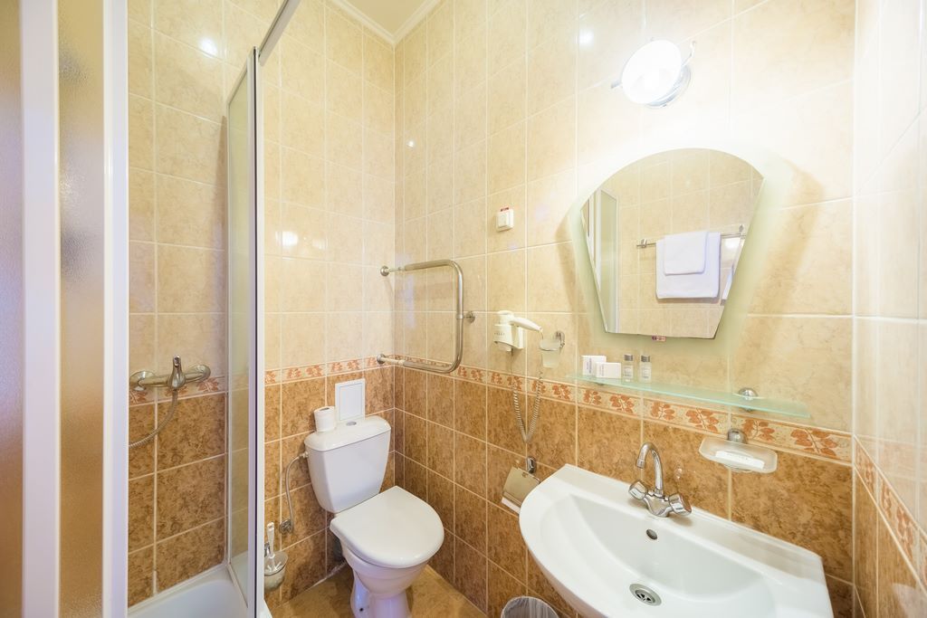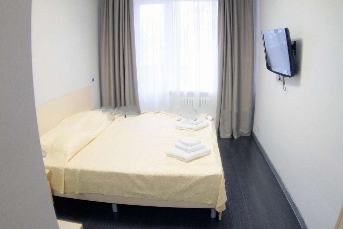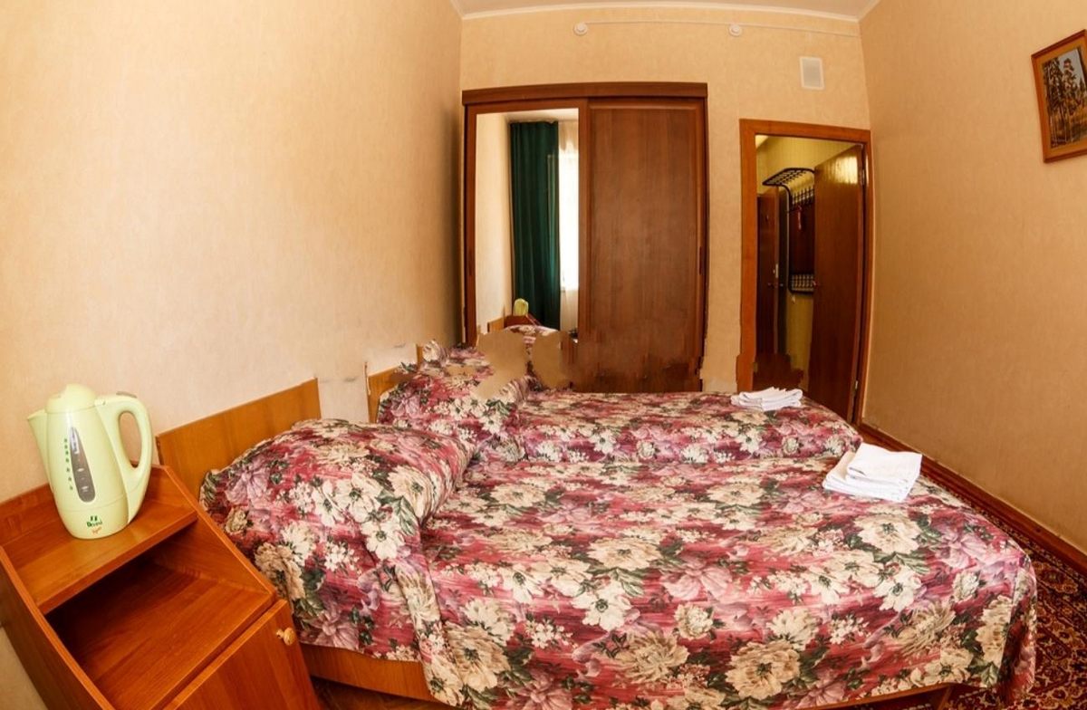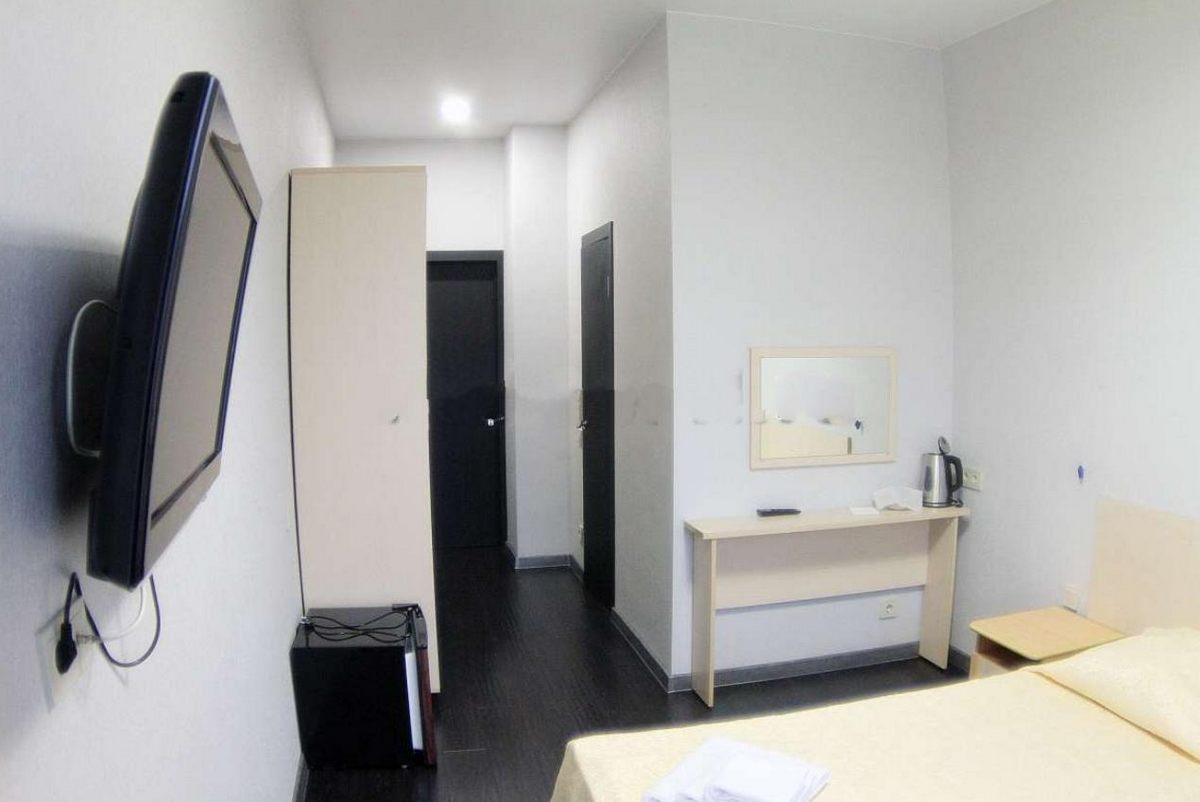 В номере: две односпальные кровати, прикроватные тумбы, шкаф, телевизор, телефон, холодильник, электрический чайник, чайный сервиз