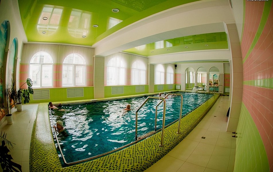 - Бассейны: крытый (пресная вода, работает круглогодично)