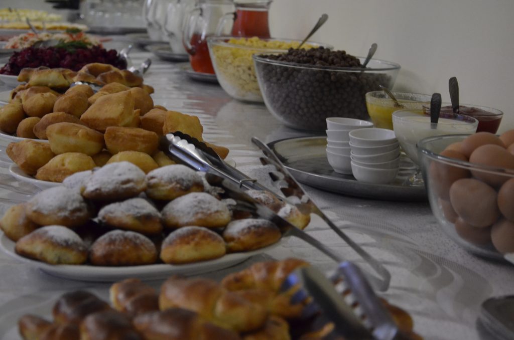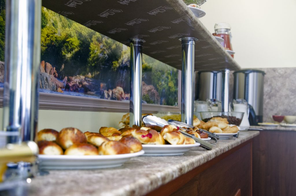 Гостям отеля предлагается воспользоваться услугами стильного и современного ресторана «Снежный барс», где можно насладиться восхитительной кавказской и традиционной европейской кухней. Каждое утро с 8:00 до 10:00 для постояльцев сервируют обширный «шведский стол», завтрак по этой популярной системе уже включён в стоимость проживания. В меню вы найдете горячие каши, яичницу, свежие овощи и фрукты, легкие мясные блюда и аппетитные сыры, а также горячий чай и ароматный кофе. Никто не будет ограничен в количестве подходов к столу!