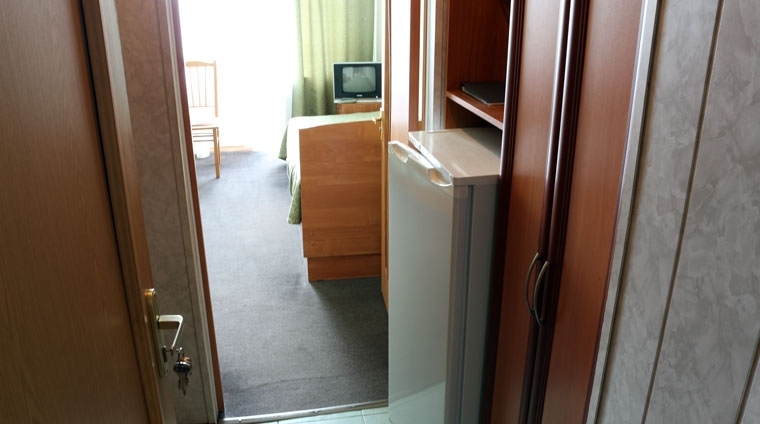 В номере: Двуспальная или две раздельные кровати, прикроватные тумбочки, светильники, стулья, журнальный столик, комод с зеркалом, электрический чайник, набор посуды, телевизор, холодильник, телефон.