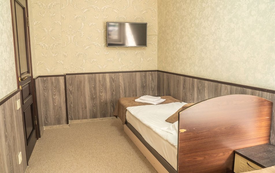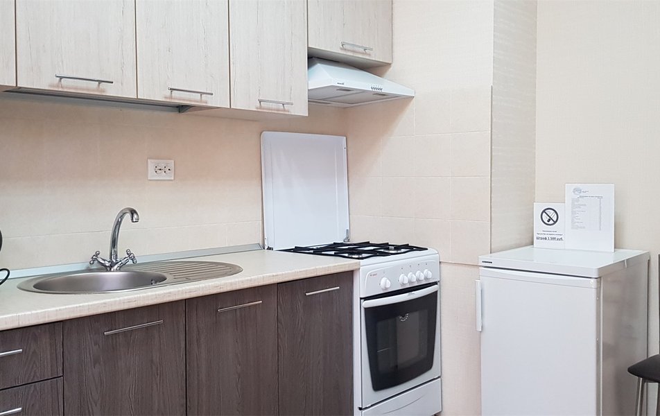 В номере: вешалка, зеркало, кровати односпальные, прикроватные тумбочки, стол, стулья, шкаф, Мини-кухня, набор посуды, плита электрическая, телевизор, холодильник, чайный набор посуды, электрочайник
