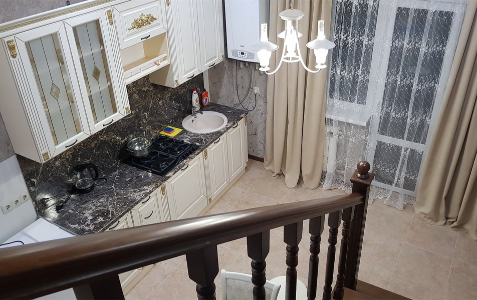В номере: Кухня, вешалка, диван, зеркало, кресла, кровать двуспальная, прикроватные тумбочки, стол, стулья, шкаф, набор посуды, плита электрическая, посудомоечная машина, телевизор, холодильник, чайный набор посуды, электрочайник