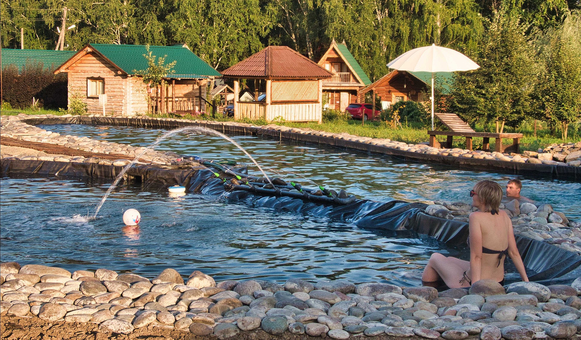 - с пляжной зоной, вода пресная, не подогреваемый, пользование бассейном входит в стоимость, работает сезонно