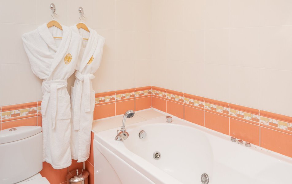 Санузел: джакузи, ванна, душевая кабина или ванна, раковина, унитаз, фен, тапочки, туалетные принадлежности