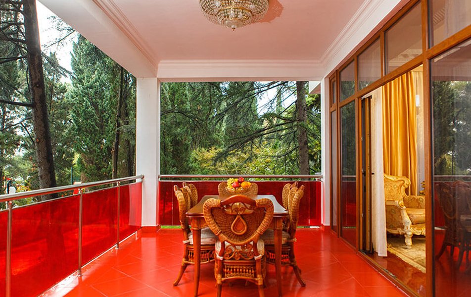Балкон: с мебелью: (ротанговая) и шезлонги