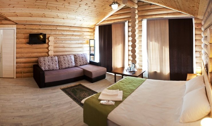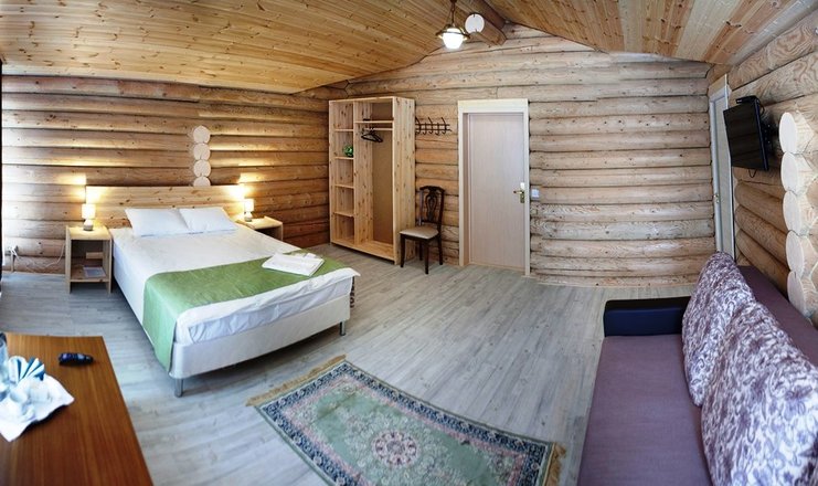 В номере: вешалка, диван раскладной, зеркало, кровать двуспальная, прикроватные тумбочки, столик журнальный, шкаф, телевизор ЖК