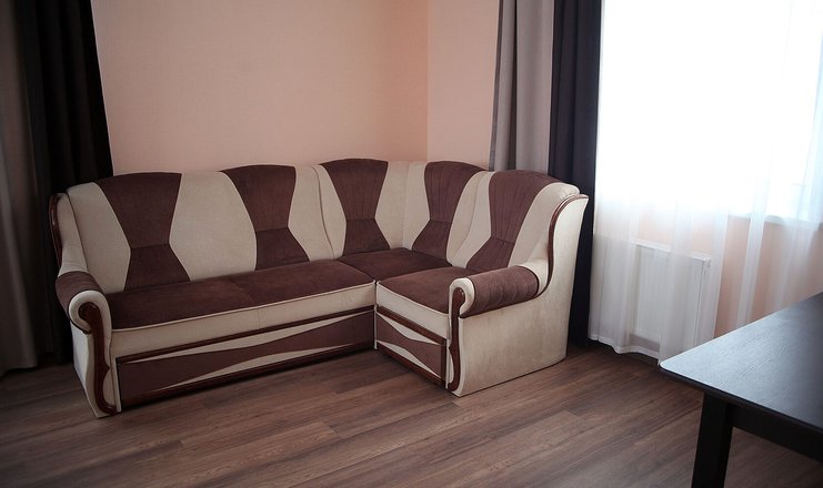 В номере: вешалка, диван, кровати односпальные, кровать двуспальная: 2, прикроватные тумбочки, стол, стулья, шкаф, Мини-кухня, микроволновая печь, набор посуды, плита электрическая, телевизор ЖК, холодильник, чайный набор посуды, электрочайник