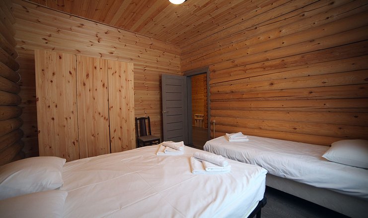 В номере: Кухня вешалка, зеркало, кровати односпальные, кровать двуспальная, прикроватные тумбочки, стол, стулья, шкаф, микроволновая печь, набор посуды, плита электрическая, телевизор ЖК, чайный набор посуды, электрочайник